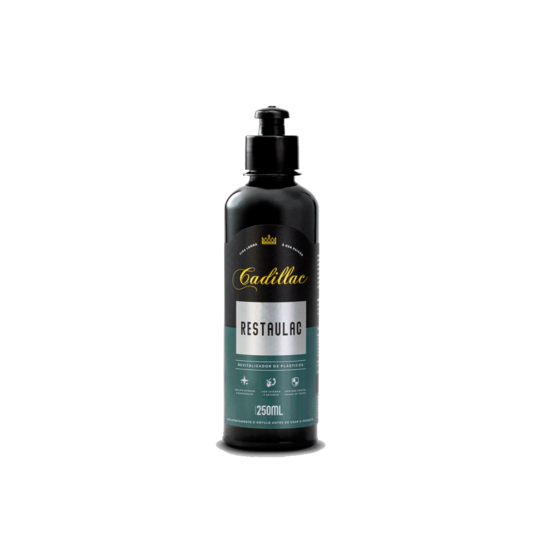 Restaurador de Plásticos Perfeito para garantir longa duração de brilho e proteção em plásticos externos, Restaulac Cadillac veio para atender o desejo de apaixonados por carros que buscam restaurar a aparência dos para-choques, para-lamas, painéis, laterais de porta, capota marítima, plásticos internos e externos.